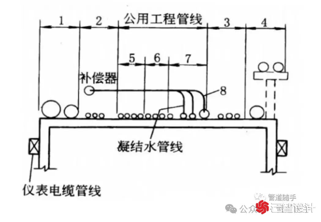 (4)蒸汽、装置空气、氨气、仪表空气等公用物料管道及工艺气体管道宜布置在上层;