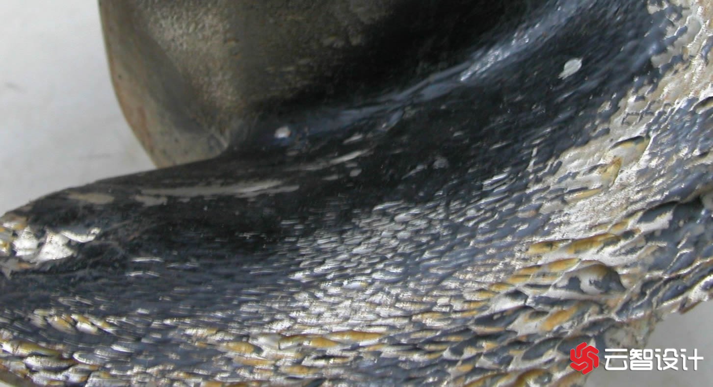 在液体一定温度下,降低压力至该温度下的汽化压力时,液体便会产生充满气体的汽泡,这是产生汽蚀的根本原因。当这些汽泡流动到高压处时,体积减小以至破灭,这种由于压力上升导致汽泡消失在液体中的现象被称为汽泡的覆灭。而汽蚀发生时产生的气泡和爆破过程会对过流部件造成腐蚀破坏。文章源自云智设计-https://www.cidrg.com/ideabank/wiki/22809.html